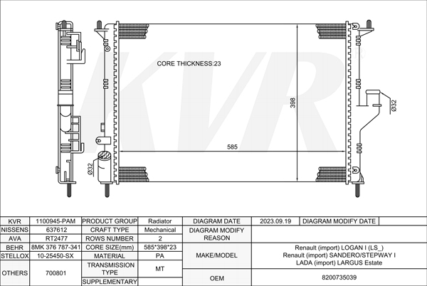 - APPLICATION:Renault LOGAN I(LS_)'2004-/LADA LARGUS Estate'2012