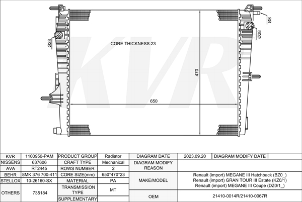 - APPLICATION:Renault MEGANE III Hatchback (BZ0_)'2008-