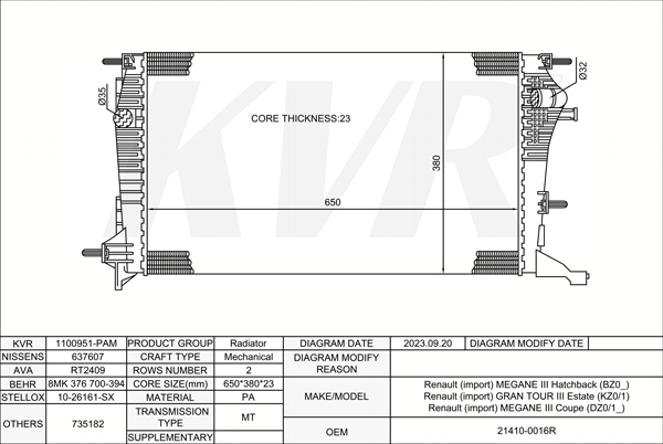 - APPLICATION:Renault MEGANE III Hatchback (BZ0_)'2008-
