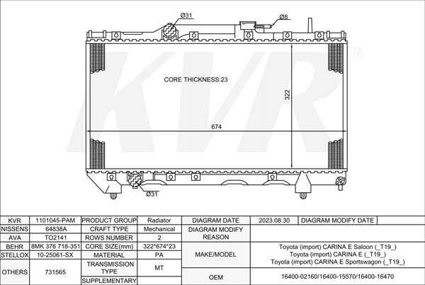 - OEM:16400-02160/16400-15570/16400-16470