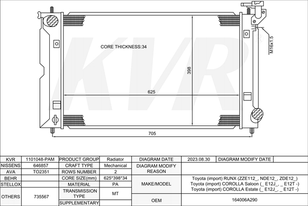 TOYOTA HATCHBACK,2001-07 1ND-TV RADIATOR