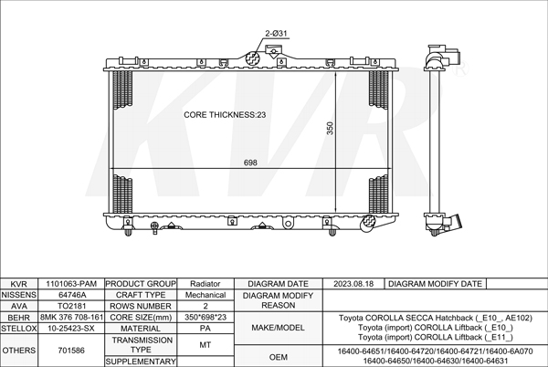 - OEM:16400-64630/16400-64720/16400-64721/16400-6A070