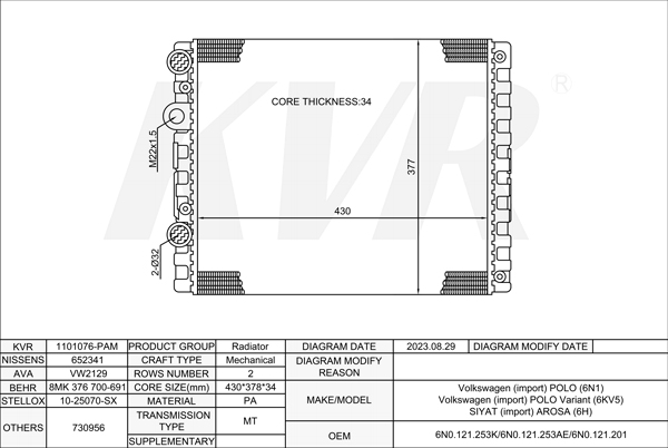 - OEM:6N0.121.253K/6N0.121.253AE/6N0.121.201