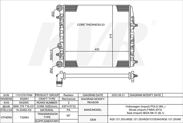 - OEM:6Q0.121.253J/6QE.121.253/6Q0121253AG/6Q0.121.253AE