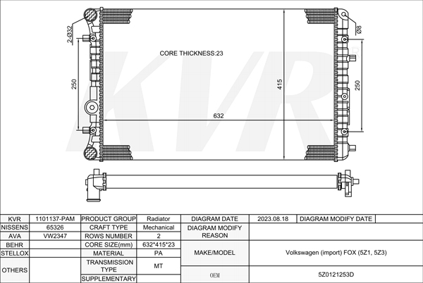 - APPLICATION:Volkswagen FOX (5Z1, 5Z3)'2003-