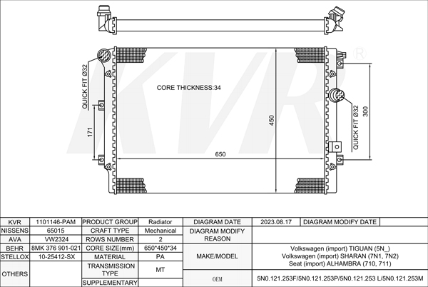 VOLKSWAGEN MPV,2010- CFFA RADIATOR
