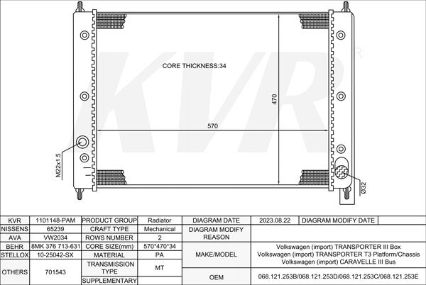 VOLKSWAGEN BOX,1979-92 MV RADIATOR
