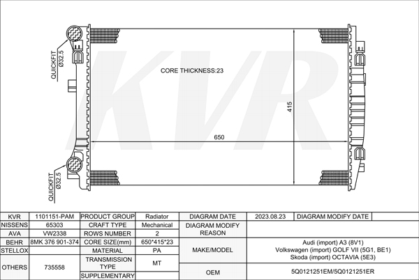VOLKSWAGEN HATCHBACK,2012- CRMB RADIATOR