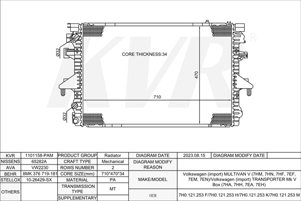 - APPLICATION:Volkswagen MULTIVAN V (7HM, 7HN, 7HF, 7EF,7EM, 7EN