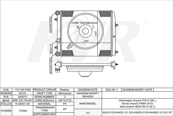 - OEM:6Q0121253H/6Q0.121.253 K/6Q0121201HA/6Q0.121.201BT