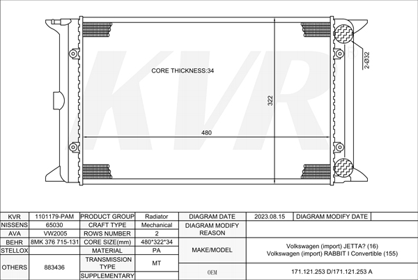 VOLKSWAGEN SALOON,1978-87 EG RADIATOR