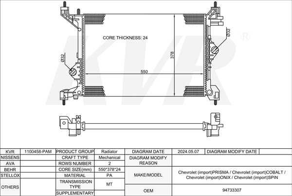 CHEVROLET SALOON,2011-16 LKF(85CUL4) RADIATOR