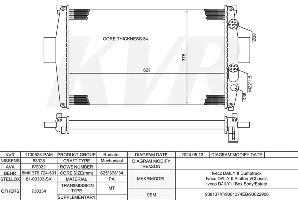 - Core size(mm) Mechanical:625*378*34
