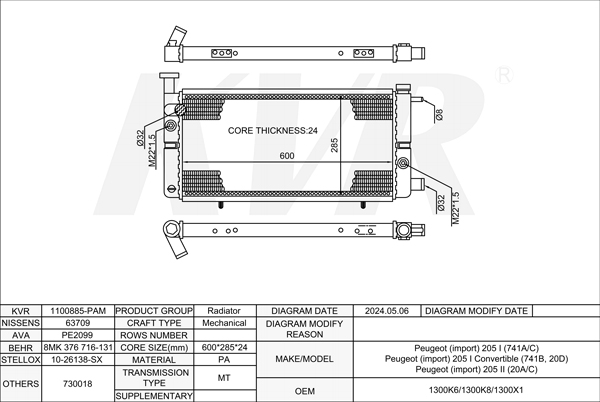 PEUGEOT HATCHBACK,1983-97 DFZ (XU9J1) RADIATOR
