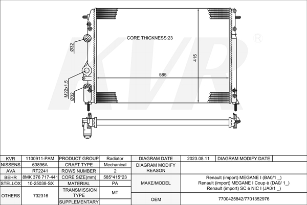 - OEM:7700425842/7701352976