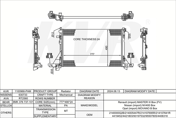 RENAULT BOX,2010- M9T 898 RADIATOR