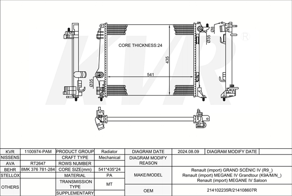 RENAULT MPV,2016-23 R9M 452 RADIATOR
