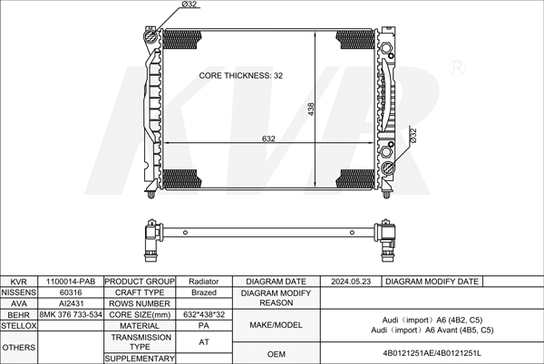 - APPLICATION:Audi A6 (4B2, C5)'1997-2005/A6 Avant (4B5, C5)'199