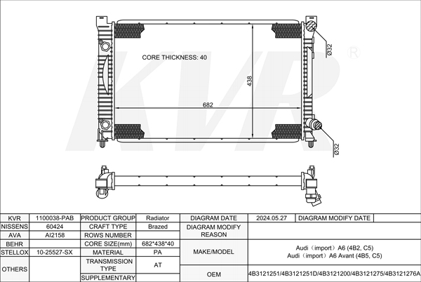 AUDI SALOON,1997-2005 AWN RADIATOR