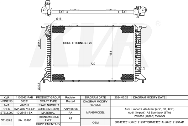 - OEM:8K0121251K/8K0121251T/8K0121251AH/8K0121251AD