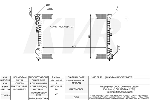 FIAT BOX,1996-2006 RFN (EW10J4) RADIATOR