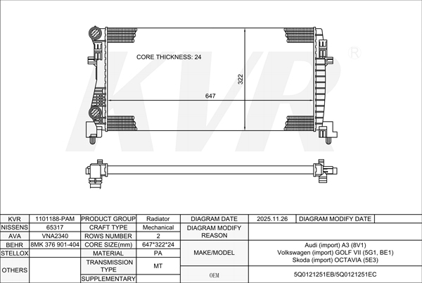 VOLKSWAGEN HATCHBACK,2012- CJZA RADIATOR