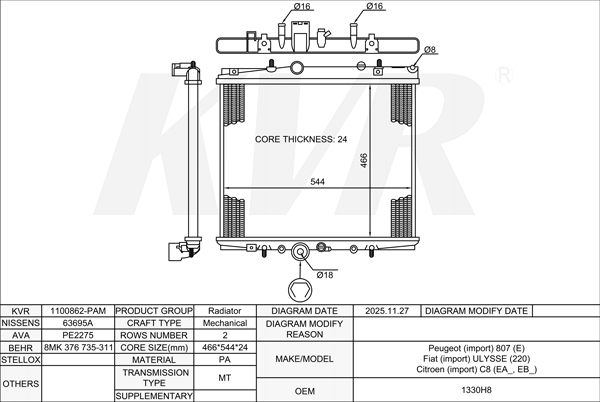 PEUGEOT MPV,2002- XFX (ES9J4S) RADIATOR