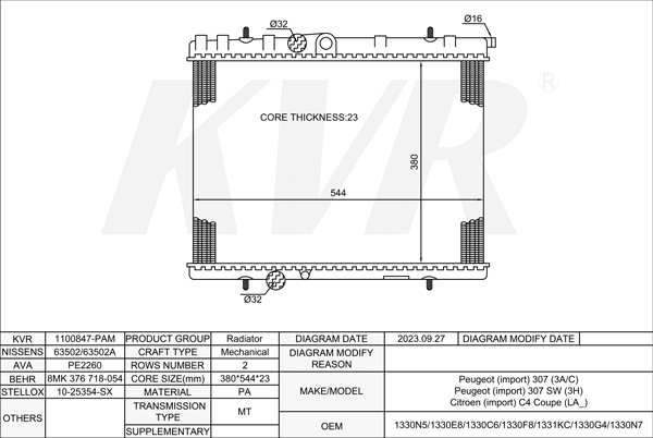 - APPLICATION:Peugeot 307 (3A/C)'2000-/307 SW (3H)'2002-
