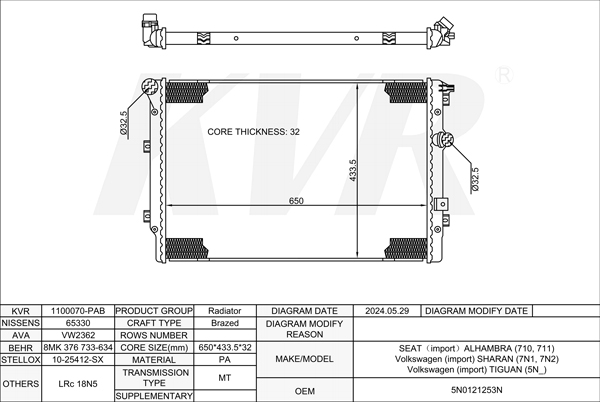 VOLKSWAGEN MPV,2010-15 CFFB RADIATOR