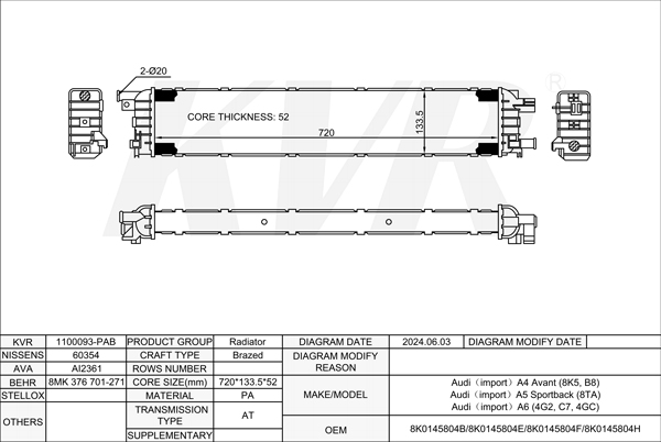- Core size(mm)Brazed:720*133.5*52