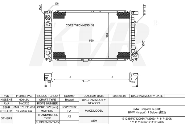 BMW SALOON,1987-95 M30 B34 (346KB) RADIATOR