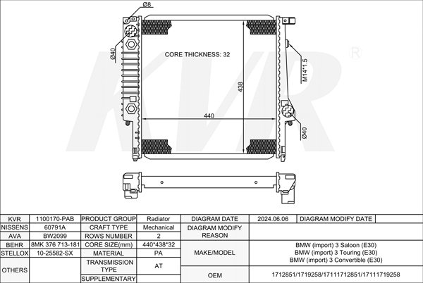 BMW SALOON,1982-92 M20 B25 (256K1) RADIATOR