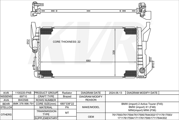BMW SUV,2015-22 B38 A15 A RADIATOR