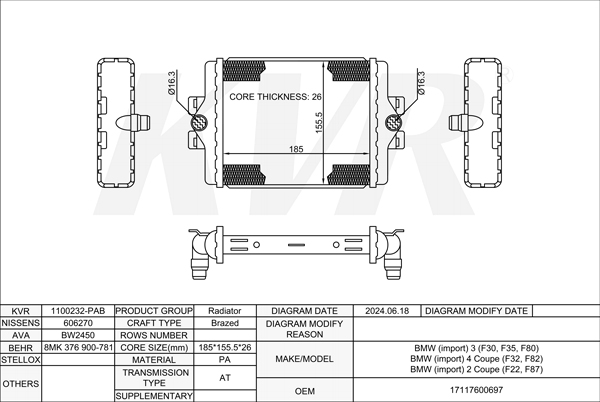 BMW SALOON,2011- N57 D30 A RADIATOR