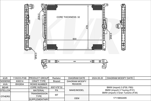 BMW SALOON,2015-18 B48 B20 A RADIATOR