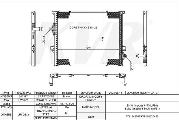 BMW SALOON,2015-18 B58 B30 A RADIATOR
