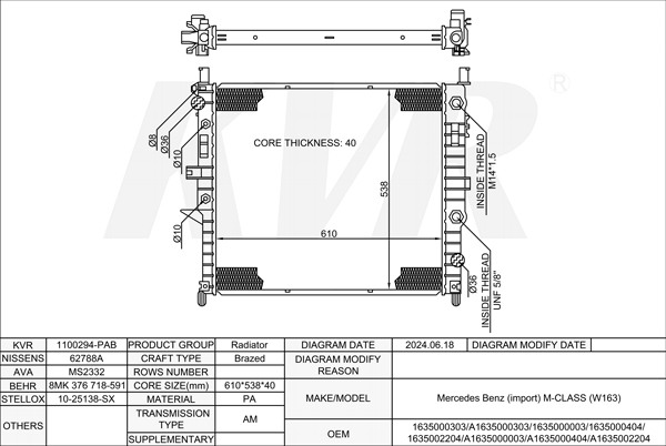 - APPLICATION:Mercedes Benz M-CLASS (W163)'1998-2005