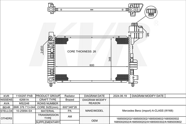 MERCEDES BENZ HATCHBACK,1997-2004 M 166.990 RADIATOR