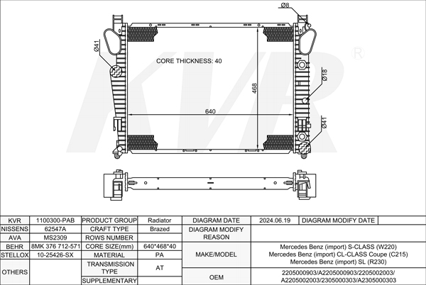 MERCEDES BENZ SALOON,1998-2005 M 113.991 RADIATOR