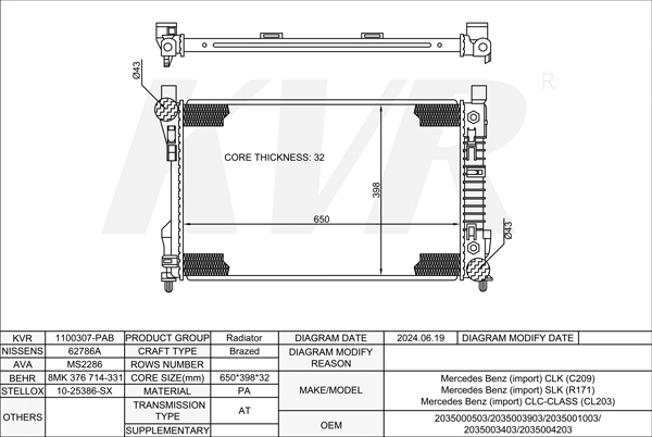 MERCEDES BENZ CONVERTIBLE,2004-11 M 272.963 RADIATOR