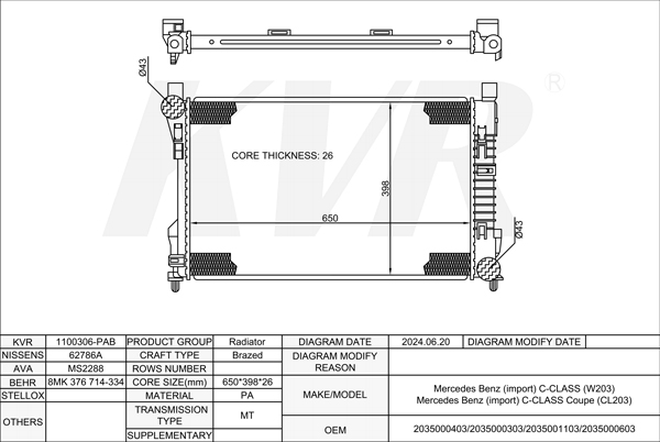 - APPLICATION:Mercedes Benz C-CLASS Saloon (W203)'2000-07