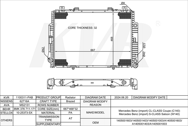 MERCEDES BENZ COUPE,1992-99 M 119.981 RADIATOR