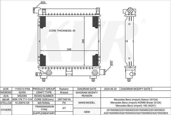 MERCEDES BENZ SALOON,1984-93 M 102.922 RADIATOR