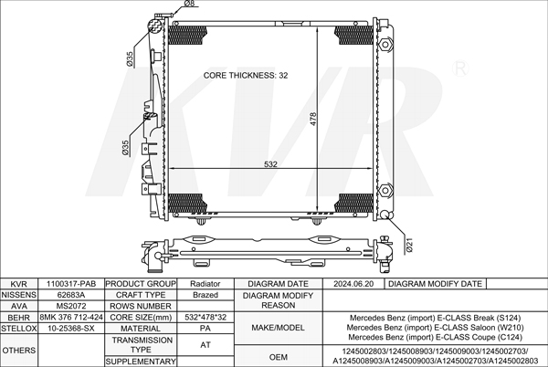 MERCEDES BENZ ESTATE,1993-96 M 104.992 RADIATOR