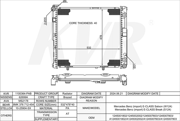 MERCEDES BENZ ESTATE,1993-96 OM 606.910 RADIATOR