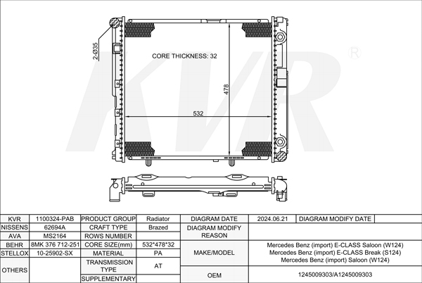 - APPLICATION:Mercedes Benz E-CLASS Saloon (W124)'1993-95