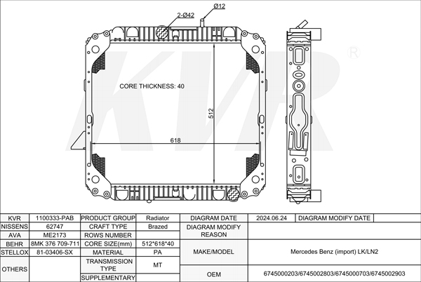 - Core size(mm)Brazed:512*618*40