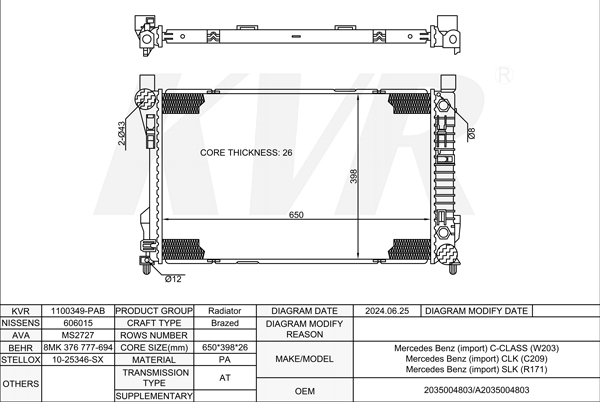 MERCEDES BENZ SALOON,2000-07 M 113.988 RADIATOR