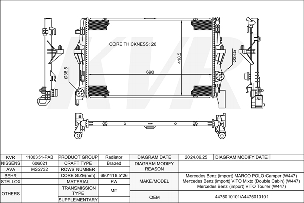 - APPLICATION:Mercedes Benz MARCO POLO Camper (W447)'2015-