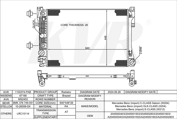 - Core size(mm)Brazed:640*448*26